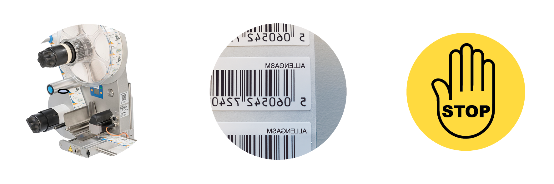 | Capteur d’arrêt des étiquettes | Pour étiquettes non transparentes, cellule photoélectrique à fourche ; Capteur FS03 en option nécessaire pour les étiquettes transparentes |